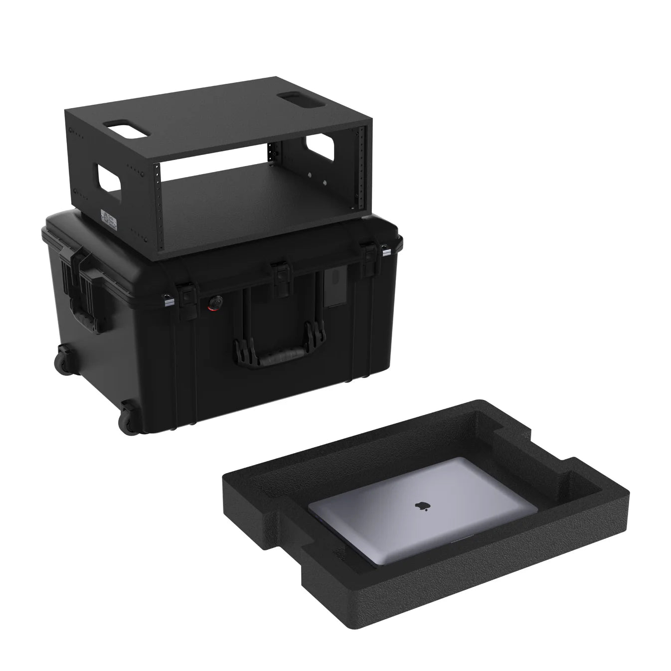 - Laptop tray sits on top of the rack inside the Pelican.
