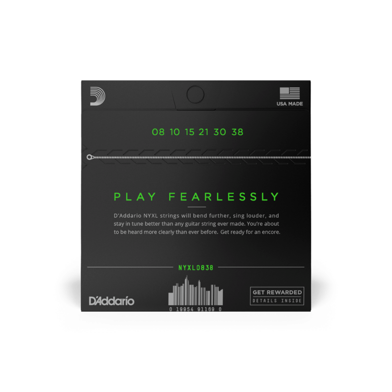 NYXLs will bend farther, sing louder, and stay in tune better than any string you’ve played before. As our premium uncoated electric string, NYXLs offer higher break strength, enhanced tuning stability, and accentuated mid-range frequency response, providing more presence and crunch to cut through the mix. Made with a NY Steel core, premium nickel-plated steel wrap wire, and Fusion Twist technology, NYXL electric guitar strings are tough enough and versatile enough to handle anything. 8-38 Extra Super Light is our lightest electric gauge, providing the lightest possible tension and greatest ease of play.