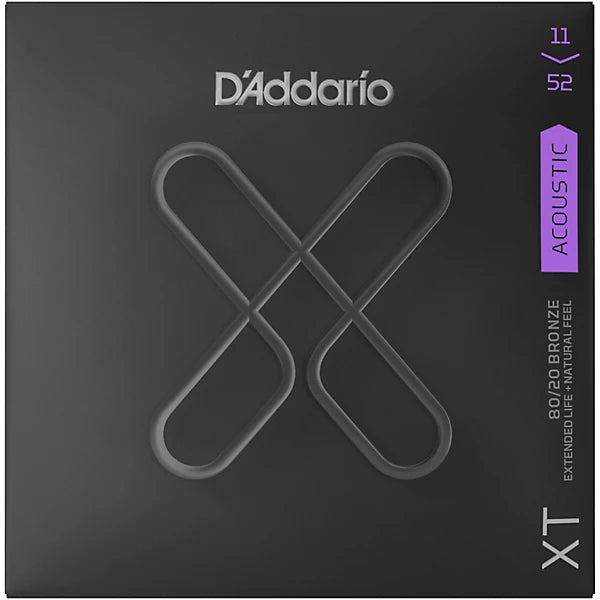 D'addario 11-52 Custom Light, XT 80/20 Bronze Coated Acoustic Guitar Strings