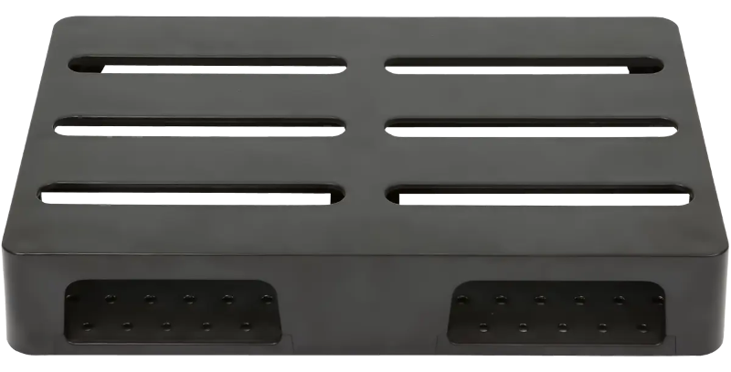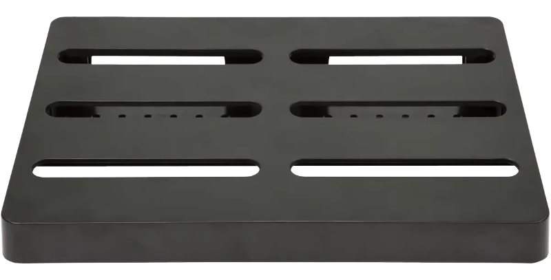 The 1SKB-PB1712 Injection Molded Pedalboard is constructed of lightweight, heavy-duty ABS and accommodates up to eight pedals. The frame size is 17.67" x 12.37". It also features a unique under-mounting surface that allows for convenient storage and transport of a variety of power supplies. Other standard features include molded-in hand grips for easy lifting, six zip ties for cable management, and 96" of 3M brand low profile Dual-Lock for secure positioning of pedals.