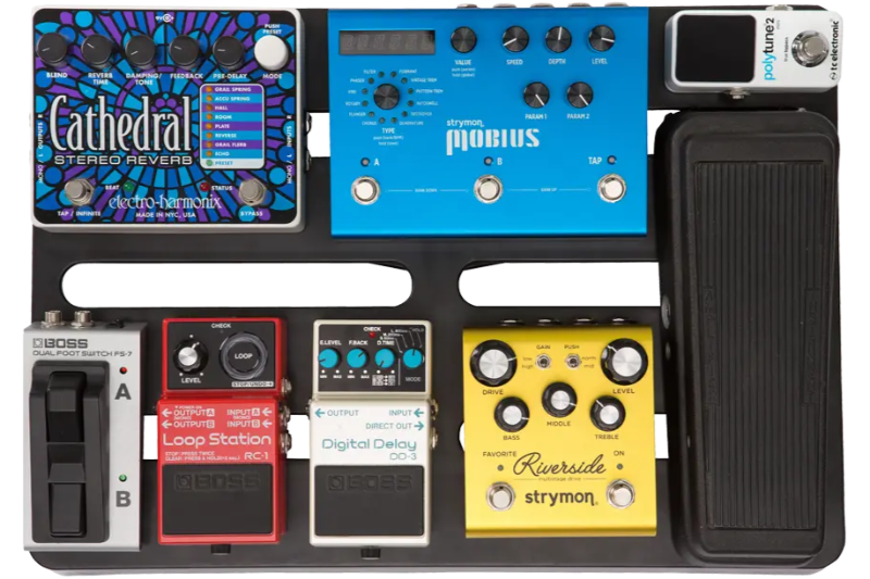 The 3i-2015-7-PB includes a 1SKB-PB1712 Injection Molded Non-Powered Pedalboard in an iSeries 2015-7 case. The Pedalboard size is 17.67" x 12.37". It also features a unique under-mounting surface that allows for convenient storage and transport of a variety of power supplies. Other standard features include molded-in hand grips for easy lifting, six zip ties for cable management, and 96" of 3M brand low profile Dual-Lock for secure positioning of pedals.